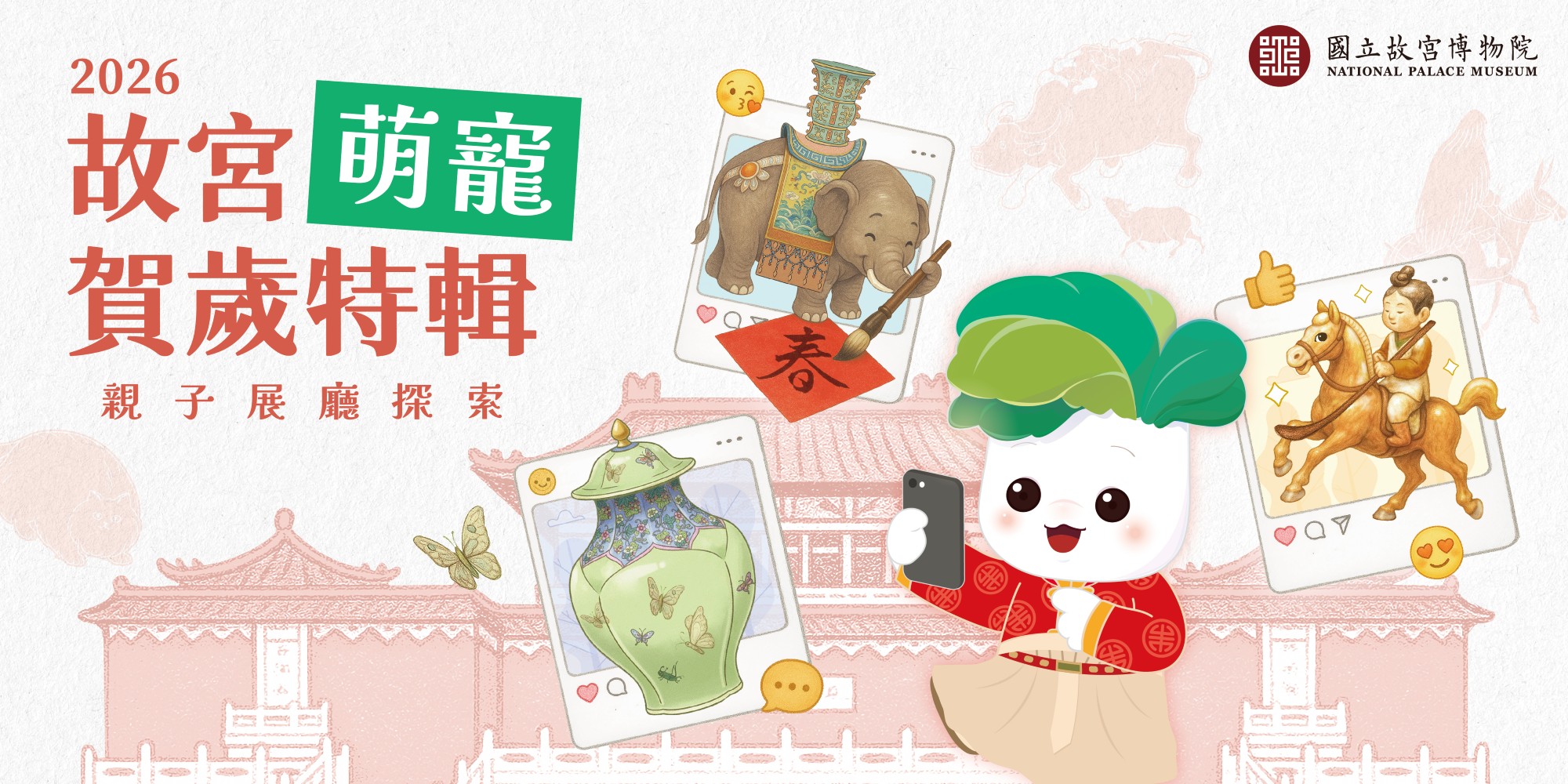 三、國立故宮博物院推出「故宮萌寵賀歲特輯」親子展廳探索活動,串聯當期「動物為伴」、「巨幅名作」、「摶泥幻化」、「愛硯成痴」、「集瓊藻」等展覽選件,設計8道關卡,邀請民眾以遊戲互動方式探索故宮文物。