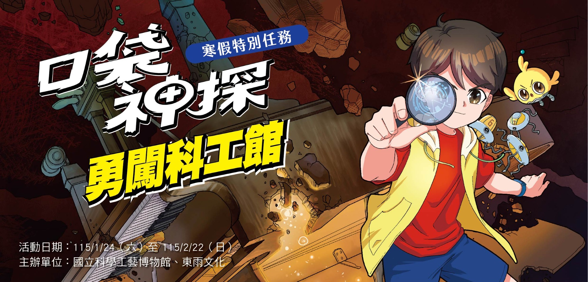 一、國立科學工藝博物館推出「寒假特別任務-口袋神探勇闖科工館」活動,邀請民眾加入「口袋神探特別小隊」,依照任務學習單指示,蒐集線索、破解任務、完成集章,就有機會獲得神秘獎勵!