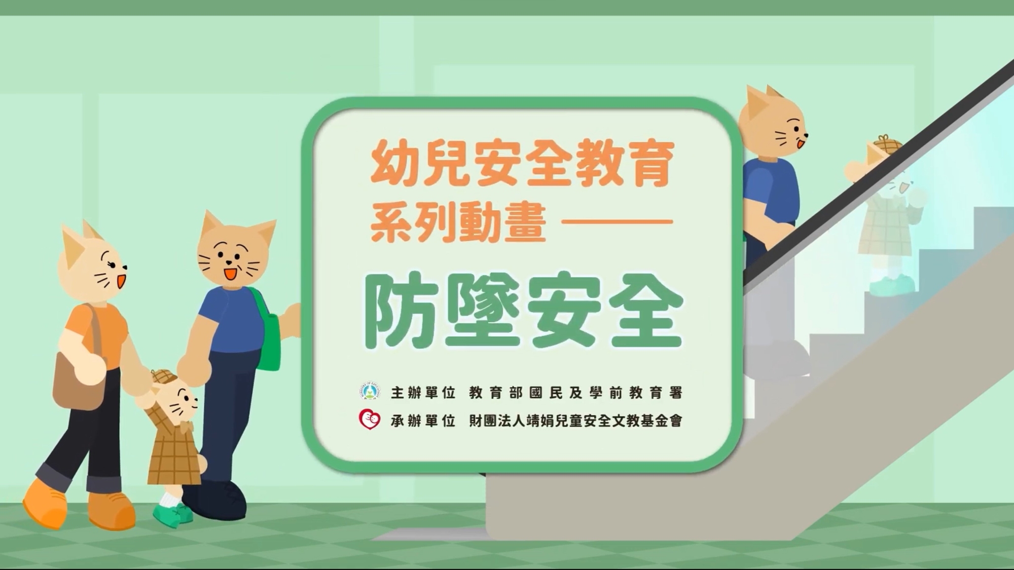 防墜安全教育方面,透過動畫呈現幼兒在家中、校園與戶外可能遇到的高低落差環境,協助幼兒學習「辨識可能跌落、墜落的地方」、「注意環境高低落差與間隙」、「採取正確方式保護自己避免跌落」。動畫以場景呈現與行為示範,引導幼兒在生活中主動察覺危險並採取安全行動。