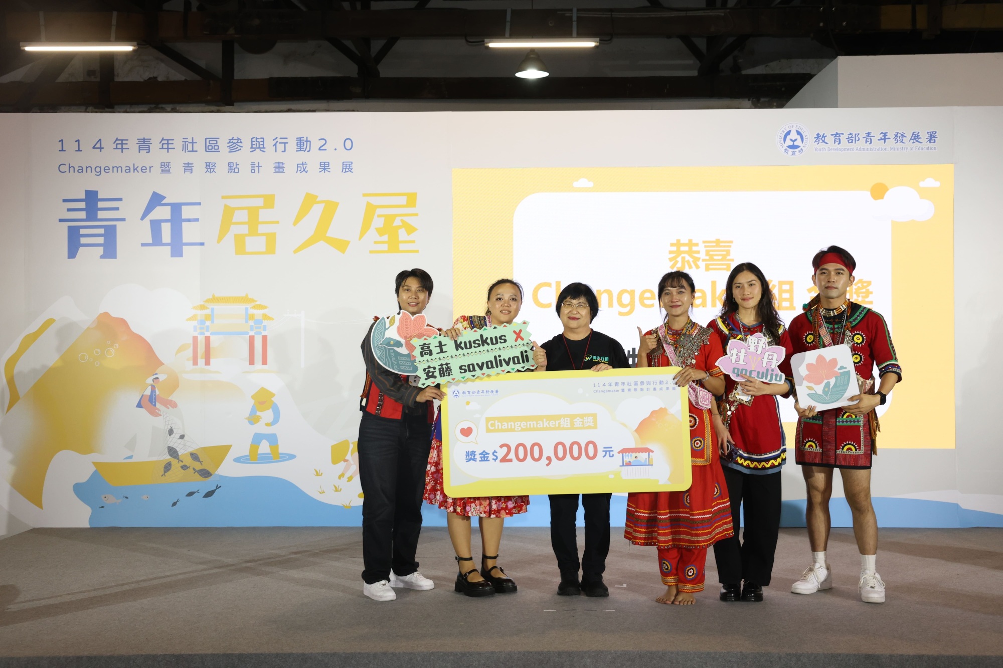 今年Changemaker計畫共吸引全國139組團隊參與提案,經三階段評選後選出50組團隊入選,並於11月28日進行成果競賽。最終由25組團隊脫穎而出獲得獎項,Changemaker組獲得金獎的團隊分別為「Sepayuan∞more青年小組」、「洋洋墨水工作室」、「野牡丹 qaculju」。「Sepayuan∞more青年小組」以「行.灣式生活」計畫讓排灣部落成為共學教室;「洋洋墨水工作室」以「離島之聲-自媒體產出培力計畫2.0」計畫探尋澎湖木蝦文化的知識與記憶;「野牡丹 qaculju」以「部落交會・世界相連:安藤 × 高士」計畫牽起青年與部落的連結。Actor組獲得金獎的團隊分別為「苑裡孩子王」、「南澳漫步地景製圖小隊」、「暖行者」。其中「苑裡孩子王」以「孩在玩」計畫實踐孩童的遊戲場與公共空間;「南澳漫步地景製圖小隊」以「南澳地景故事地圖。共創共走」計畫採集地景裡人與土地的故事;「暖行者」團隊以「暖暖源遠_暖步圖」計畫規劃步道完善長者健康體驗。另選出9組銀獎、10組銅獎,每組團隊可獲得10至20萬元不等獎金。