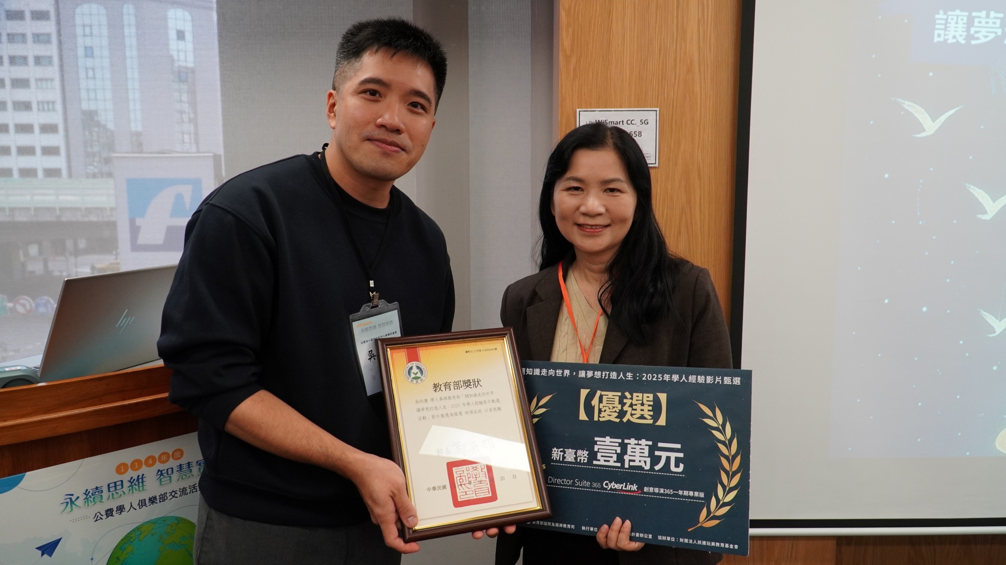 活動當天同步舉辦「學人經驗影片甄選」頒獎典禮,表揚優秀學人分享申請教育部獎學金經驗與出國留學準備。其中,公費留學考試組由吳昀慶學人榮獲優選、陳沛瑜學人獲得佳作,兩位得主皆親臨會場接受表揚。優選及佳作分別獲頒教育部獎金新臺幣1萬元及5千元,以肯定其用心投入與創意表現。所有獲獎影片均已上架於TaiwanGPS海外人才經驗分享及國際連結計畫官網(https://twgps.moe.edu.tw/Category/11),歡迎各界上網瀏覽參閱。