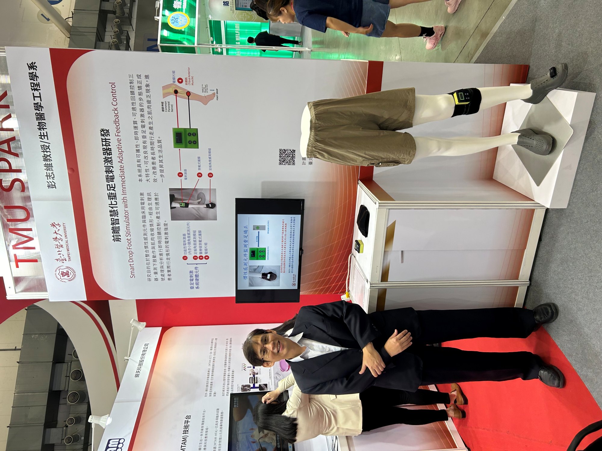 而臺北醫學大學生物醫學工程系團隊學生則是在111及112年,透過本計畫的創新創業課程及活動培訓,結合實驗室的研發成果,運用智慧感測元件與先進的電刺激技術,開發專為退化性神經疾病患者設計的高齡智慧步行的輔具「智慧型垂足電刺激器」。在113年即獲得國家新創獎的殊榮,並獲國科會科研創業計畫萌芽案670萬元創業金,更在114年11月取得經濟部價創2.0計畫2,000萬元補助,師生團隊預計於115年7月成立新創公司。