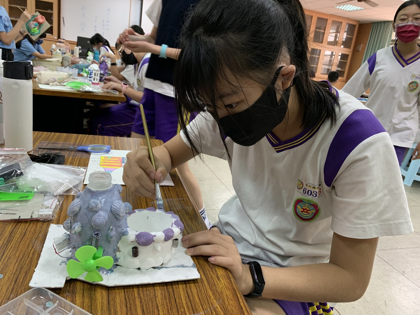 課程後段則以「未來棲息屋」為設計主題,透過「你們的未來,是我們的現在」的反思引導,思考若不愛護環境,未來的房子將會是什麼樣貌。學生統整所學的知識技能,融入個人想像與創造力,設計兼具科技、智慧、節能與再生材料概念的未來棲息屋,展現對環境永續的深度思考與創意實踐。
