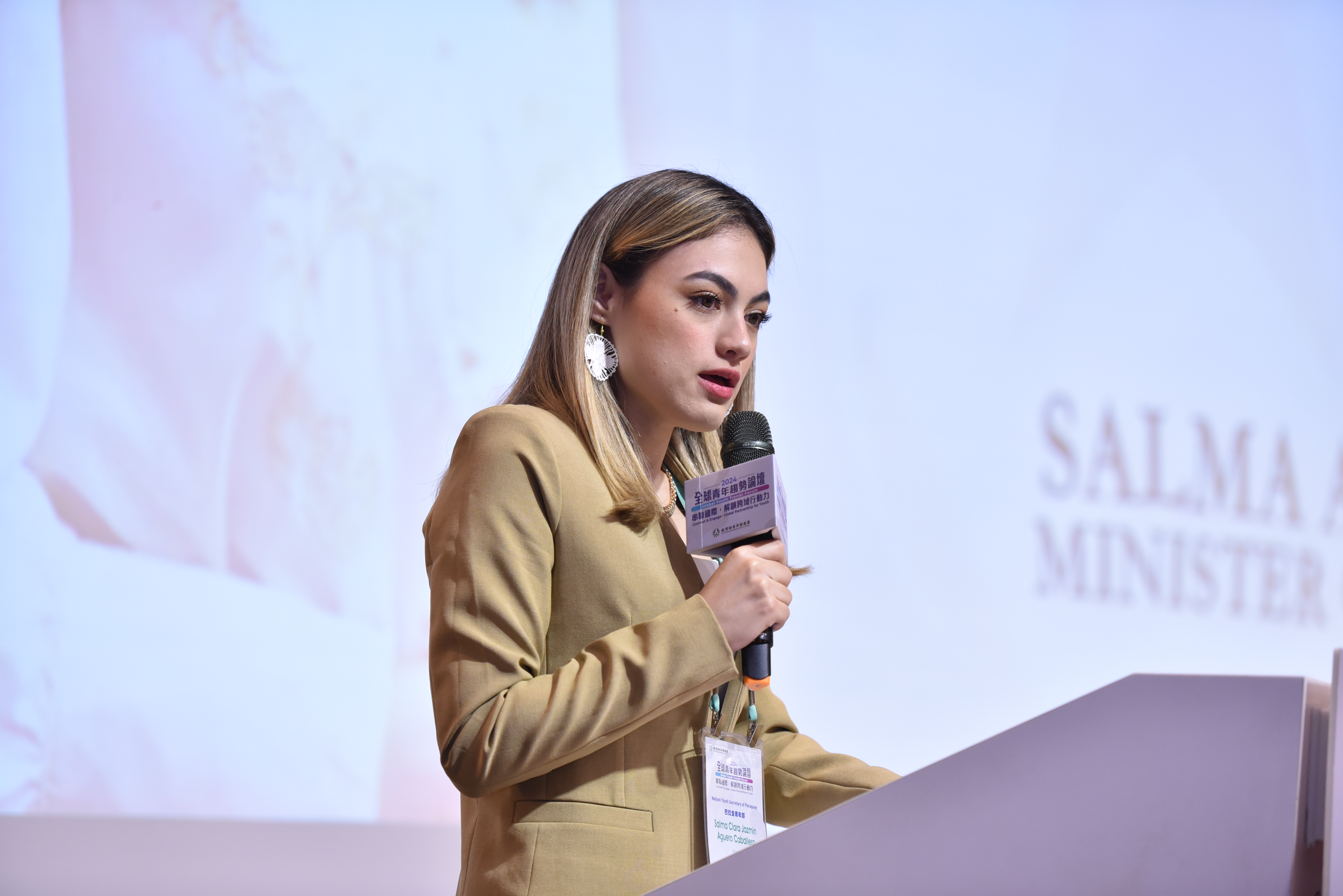 世界青年聯盟(WYA)主席Paula Andrea Lopez Rodriguez也透過線上的方式參與,並分享她在全球推動青年賦權和政策倡議的經驗。她長期致力於為青年提供一個發聲的平台,並探討青年如何透過參與國際政策制定,實現自身價值並為全球議題做出貢獻。她的演講將啟發青年認識到自己在全球舞台上的影響力,並激勵更多青年積極參與國際事務。